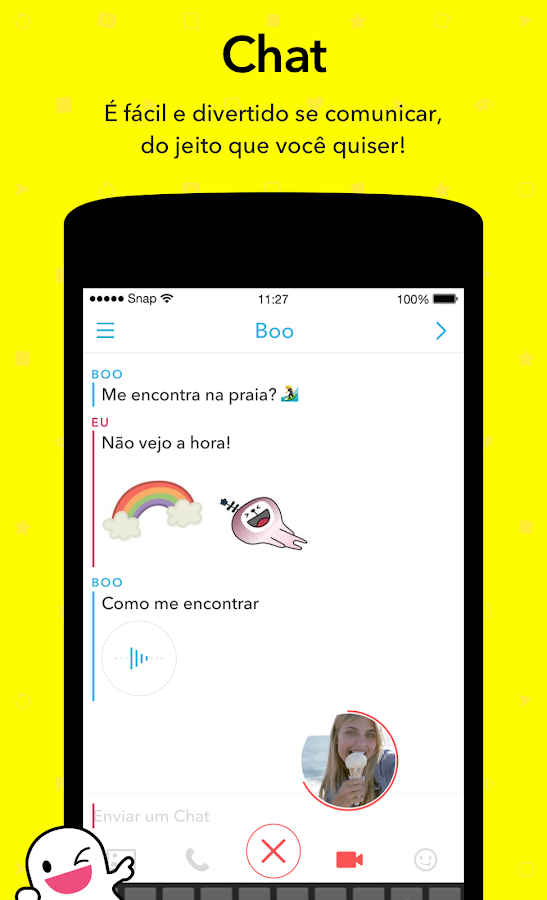 Além de ter diversos filtros divertidos no Snapchat eu quase não usei o Chat mesmo porque tem outras redes sociais para fazer isso mais com essa nova atualização fiquei movida a testar, então as novas atualizações consiste na forma de conversar agora podemos ligar, fazer conversa por vídeo enviar emojis super fofos e o melhor enviar foto da própria galeria.